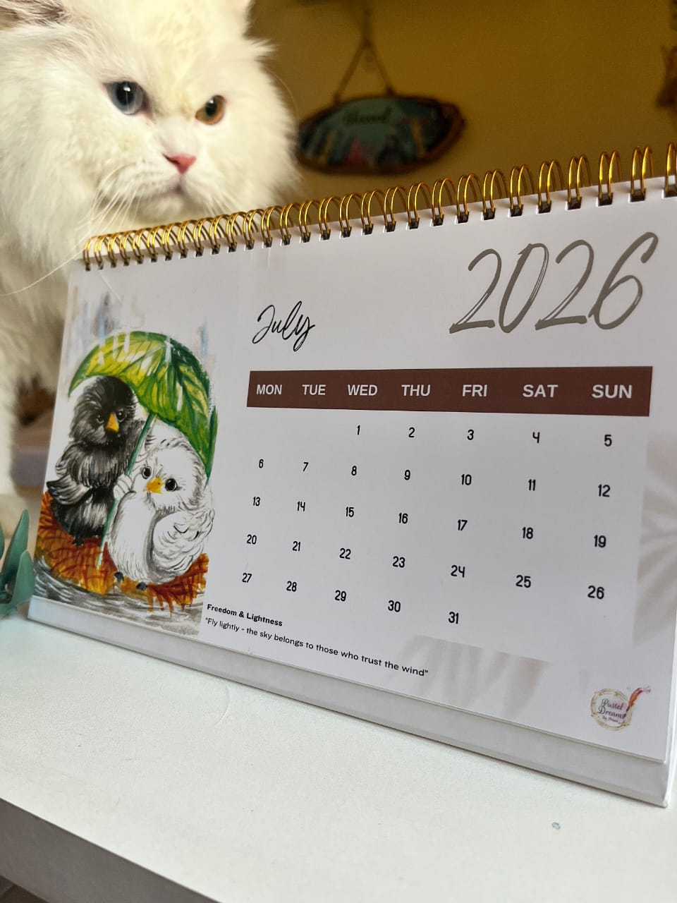 This desk calendar doesn’t just track dates—it adds character to your day. The lively bird artworks symbolize freedom, positivity, and new beginnings, making it a delightful companion throughout 2026.